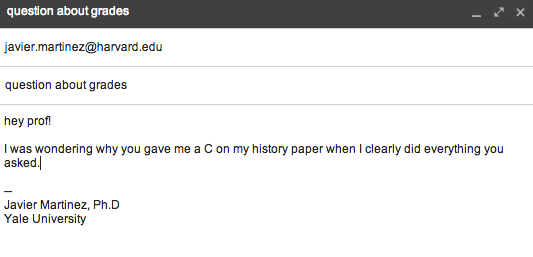 Freshman year I watched a slideshow in class about things not to write in an e-mail to a professor.