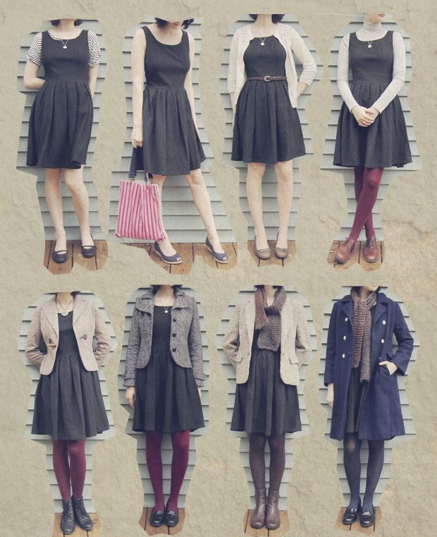 It may be as simple as adding a sweater over your shoulders, or pairing it with tights and boots to create a totally different look. You may feel like your outfit is repetitive, but the truth is when it comes to staples, no one notices if you style the outfit differently.