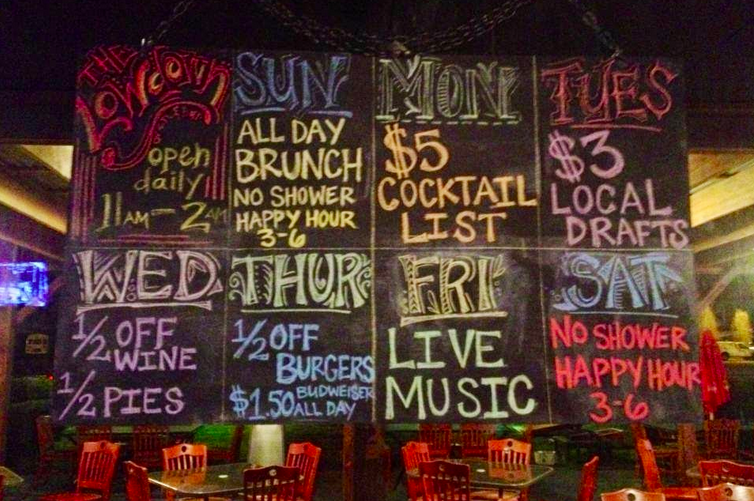 From 4 to 7 p.m. every Monday through Friday, and 3 to 6 p.m. on Saturdays and Sundays, Low Down has great deals on food and drinks plus live music: