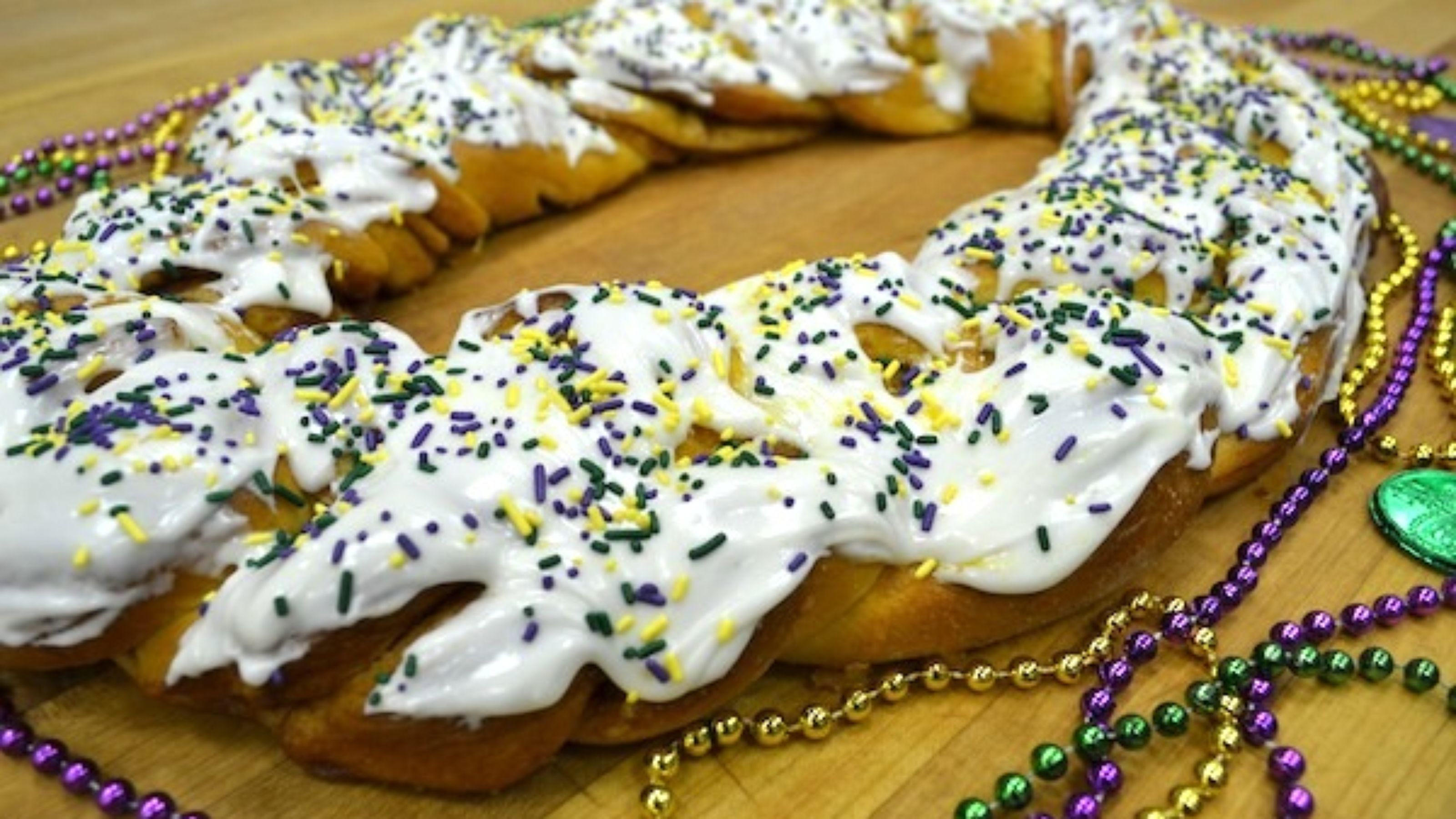 This cake is another unique twist on the traditional king cake, having basically no similarities except its shape.