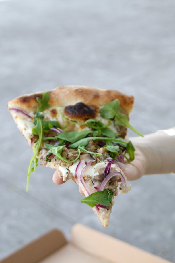 The dough is made by hand in house, the fixins’ include everything from fennel sausage to pickled banana peppers, and every pizza is made to order.