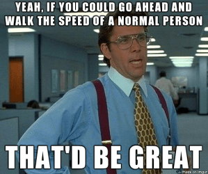 Walking slowly is not an option for you, even if you’re in another city.