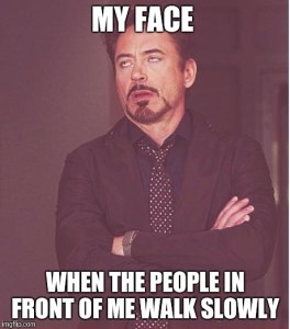 Your blood boils when people walk slowly on a sidewalk.